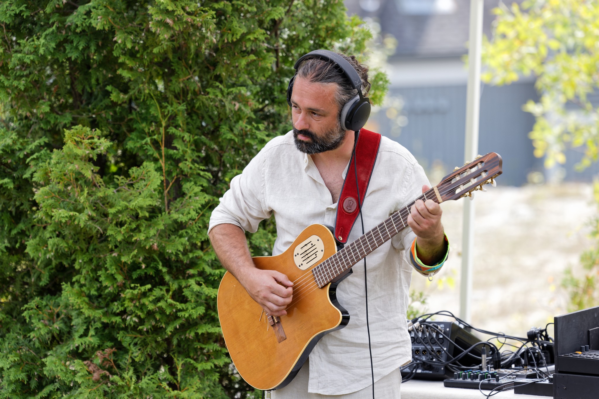 Le projet Biophilia propose un voyage artistique sur le Domaine de la Chevrotière empreint de sensibilité à travers la mise en mouvement de corps de danseuses et d’objets inanimés sous la direction chorégraphique de Geneviève Duong, basée à Québec, en symbiose avec la musique de quatre musiciens basés à Saint-Casimir, dont Jean-Michel Letendre-Veilleux, Louis-Robert Bouchard et le duo formé de Simon Paradis et Jane Ehrhardt. Grâce à un partenariat à la diffusion avec Culture et Patrimoine Deschambault-Grondines et la Biennale internationale du lin de Portneuf, ces artistes créent une expérience spectacle déambulatoire extérieure qui exprime une nouvelle vision du monde où les plantes, dotées d'intelligence et de sensibilité, sont en recherche de liens et de sens avec les humains. Une distribution composée de trois interprètes en danse au bagage diversifié, issue de Québec et de Saint-Casimir, est constituée: Karine Chiasson, Amélie Gagnon et Sonia Montminy. Ces interprètes sont recouvertes de fibres végétales de lin sculptées par Mathieu Gotti, basé à Québec, faisant intimement corps avec elles afin de les transformer en êtres végétaux bipèdes. Cette communauté végétale danse et évolue sur de la musique électro-acoustique qui, elle, est générée en direct. La résurgence du lin textile au sein d’une pratique chorégraphique contemporaine vise à honorer une culture à valeur patrimoniale qui était très répandue dans ce secteur jusque dans les années 50 et à conscientiser au sens indispensable des plantes pour l’humain.